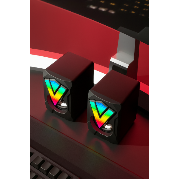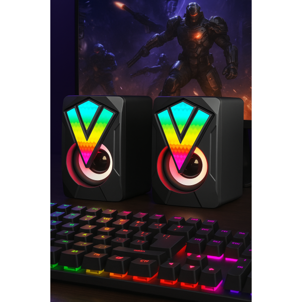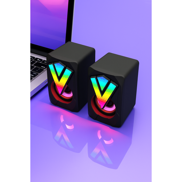 Etiquetas: bocinas para computadora con luces led rgb, altavoces usb sonido 360 grados estéreo, diseño compacto portátil para música, juegos, oficina y entretenimiento