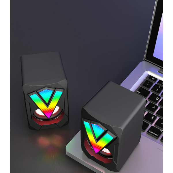 Par de bocinas estéreo para computadora con sonido 360° envolvente, conexión USB, diseño compacto con luces LED RGB, ideal para música, gaming y oficina, Mayoreo DNX-5411