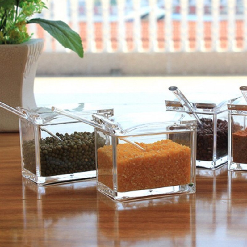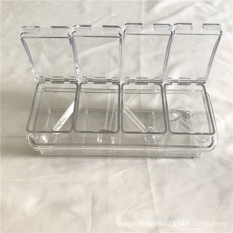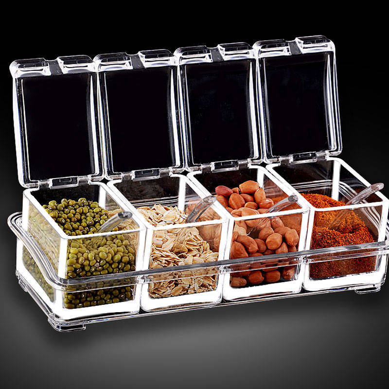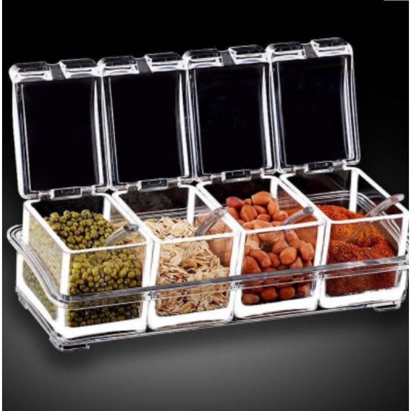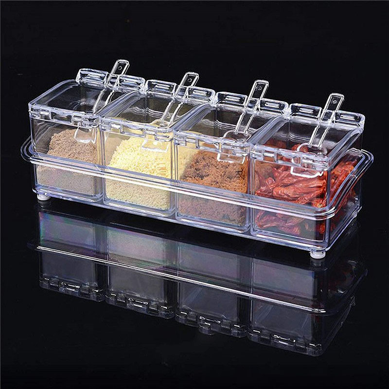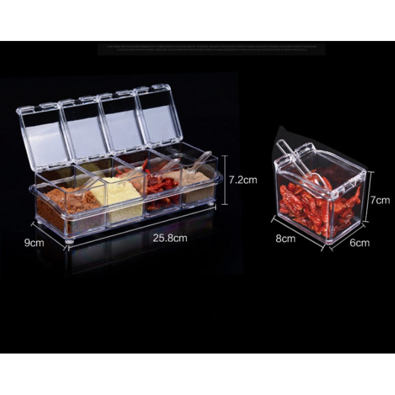 Caja con 4 especieros de condimentos transparente multifuncionales para cocina MAYOREO 10137