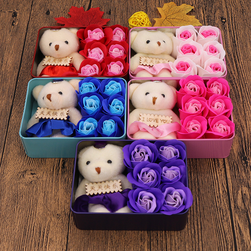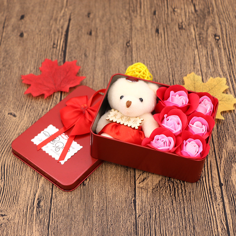 Caja de regalo cuadrada de osos con rosas W-YHSG571
