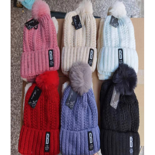 Conjunto de gorro aprueba de viento para mujer con pompon en el gorro FZ237