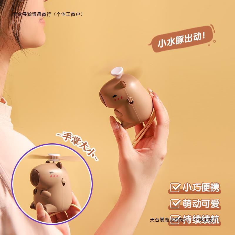 Mini ventilador de cuello portatil colgante de capibara 5*6*8cm de una marcha 250 mA recargable USB W-AFS6984