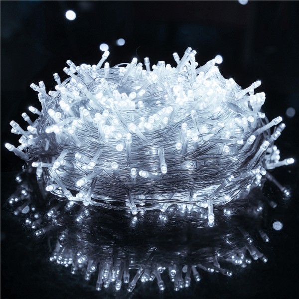 Serie de luces LED, guirnalda de luces, luces de navidad 10M, 100 luces, 110V con controlador, cable transparente, luces blancas DP-1074