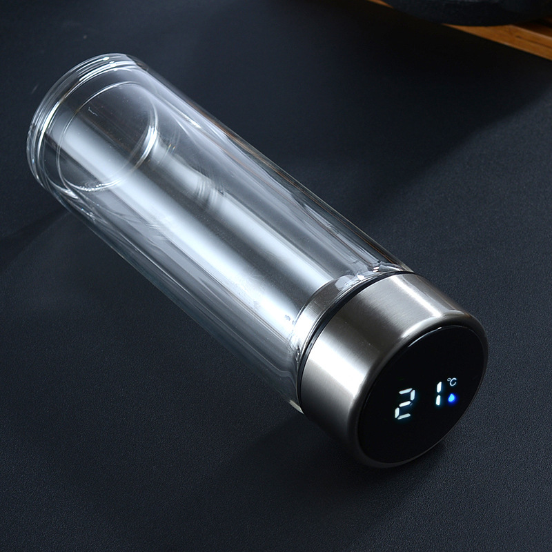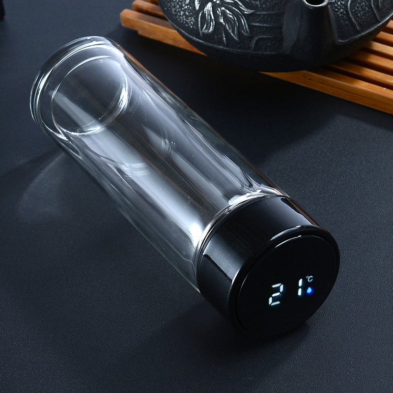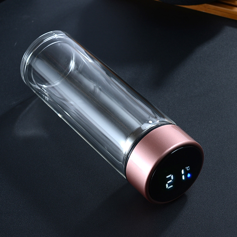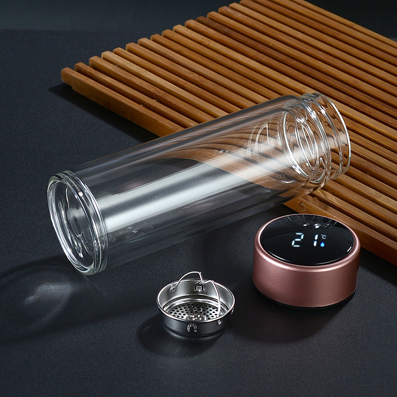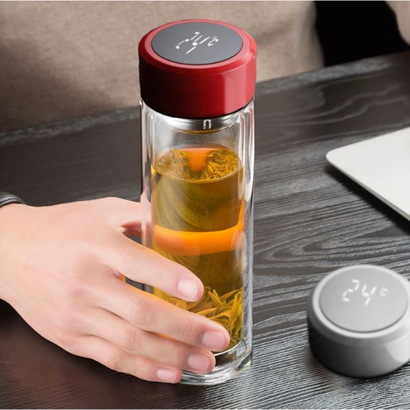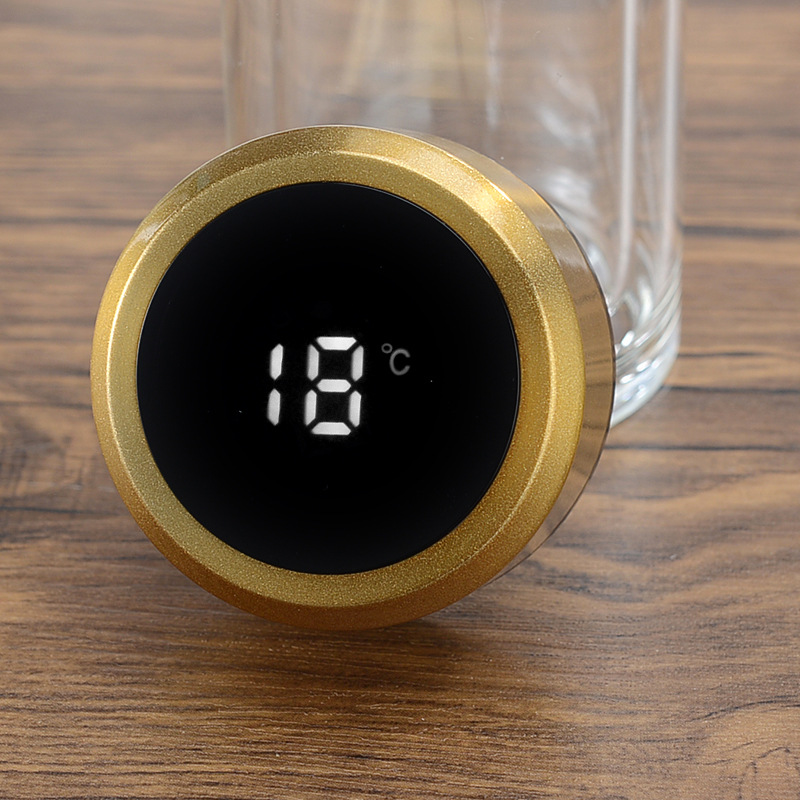 Etiquetas: Termo infusor de vidrio con tapa inteligente LED de temperatura, Por Mayoreo JJYP108, Botella de vidrio de doble capa con tapa inteligente LED que muestra la temperatura de la bebida en tiempo real. Resistente al calor, portátil y elegante, ideal para té, café, infusiones o agua. Perfecta para oficina, escuela, gimnasio o viaje