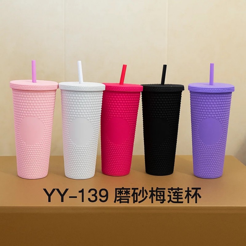 Vaso térmico tipo starbucks con textura en relieve y popote, 680 ml, colores surtidos, venta al por mayor YY-139