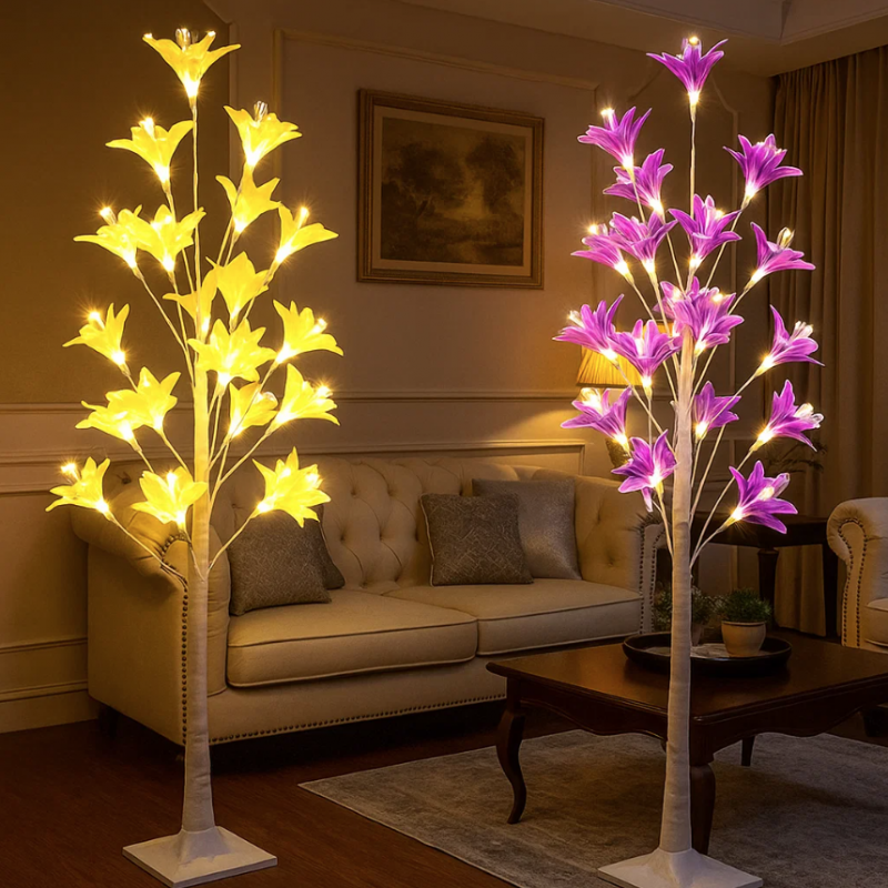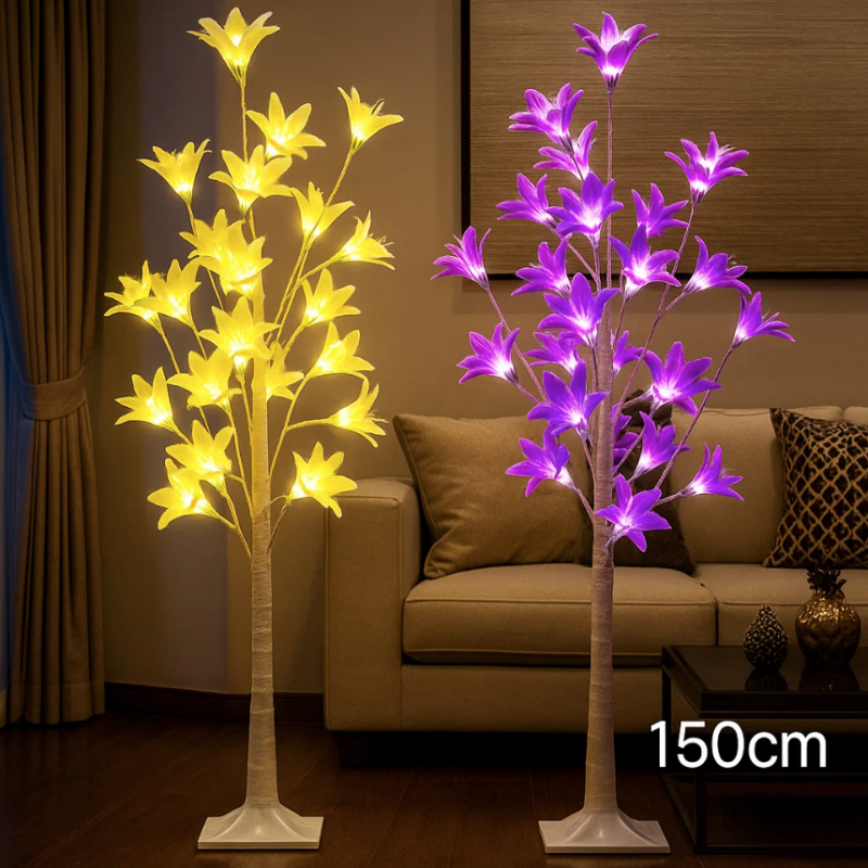 Árbol decorativo floral de azucena 1.5 m con luces LED cálidas. Ideal para interiores, eventos, decoración navideña o de jardín. Venta al por mayor ZFM-0094