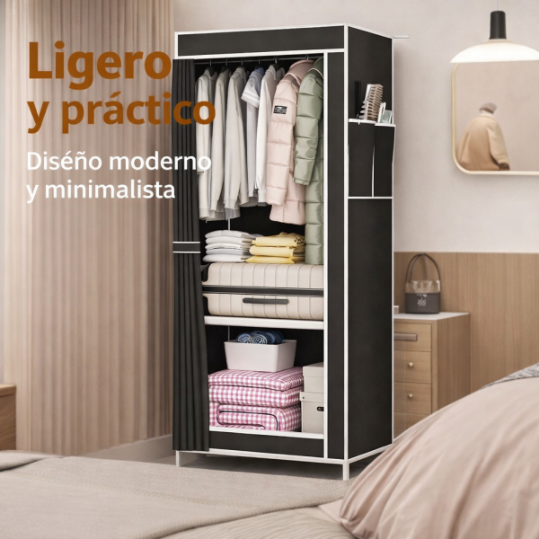 Armario Ropero Portátil de Tela con Estantes y Colgador- Ideal para recámara, departamento u oficina. Práctico y funcional. Por Mayoreo 34122-14