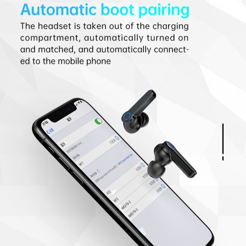 Audífonos Bluetooth M19 Inalámbricos TWS con Estuche de Carga. Color negro. Venta al por mayor EJ-01103