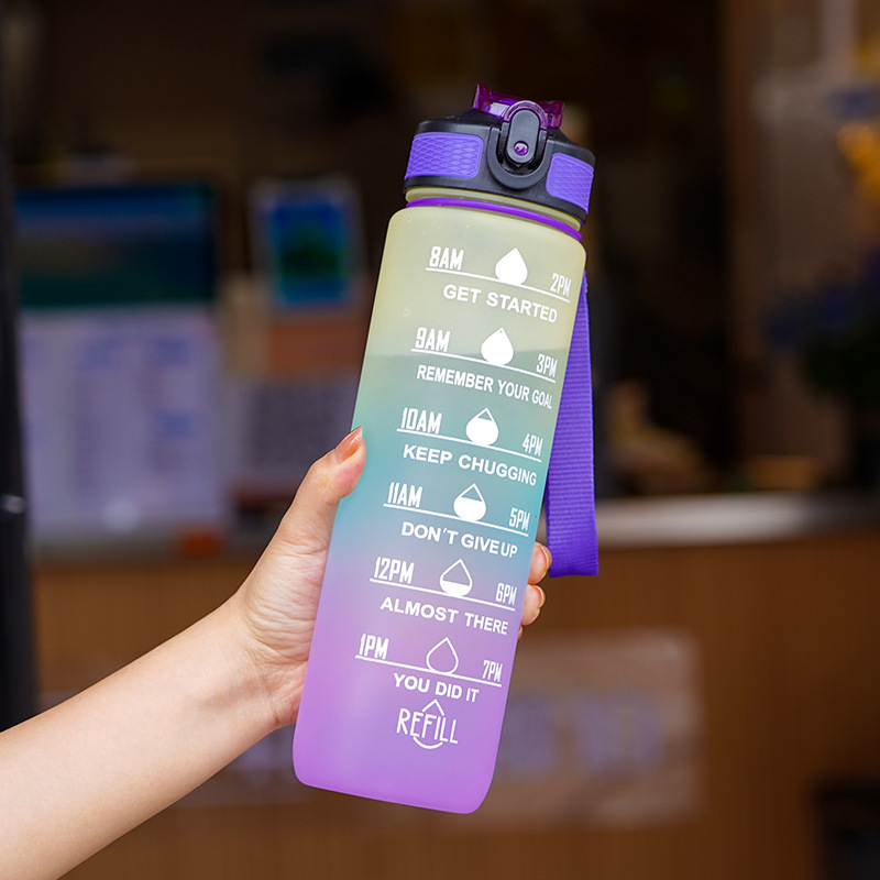 Etiquetas: botella deportiva 1 litro, botella motivacional, botella con marcadores de tiempo, botella 1000ml colores degradados, termo gimnasio, botella agua con frases