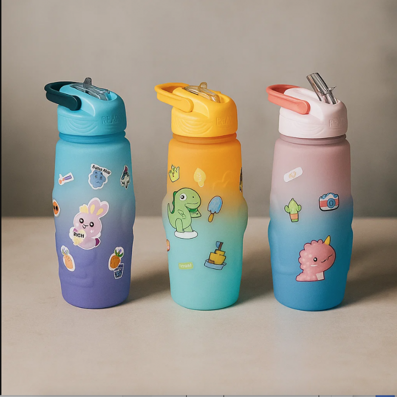 Botella deportiva de 600 ml con stickers de diseño infantil y dibujos animados, con boquilla práctica para beber y tapa. Ideal para la escuela, actividades deportivas o uso diario. Venta por mayoreo 922