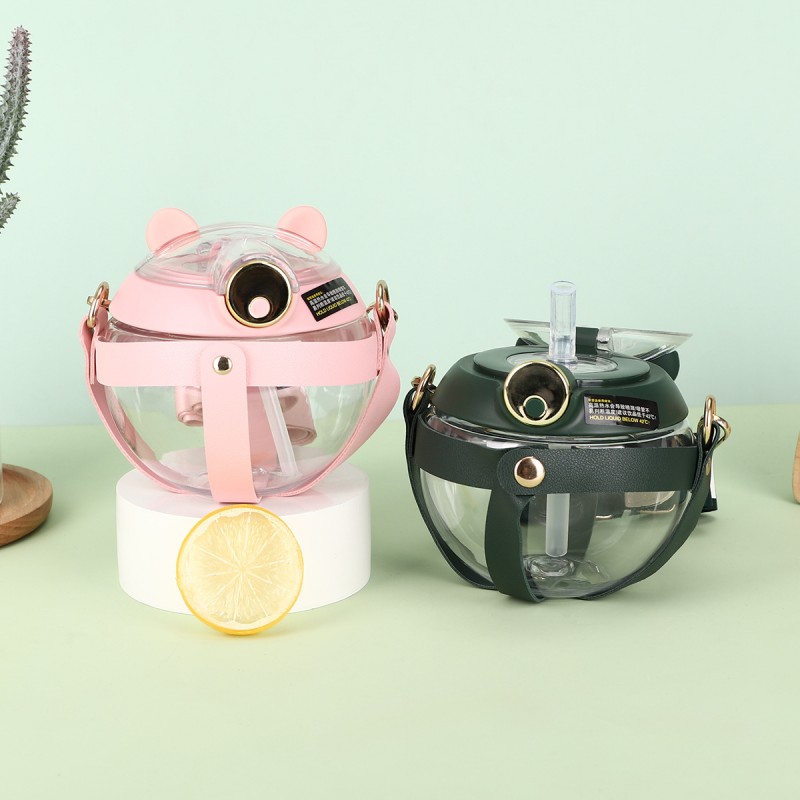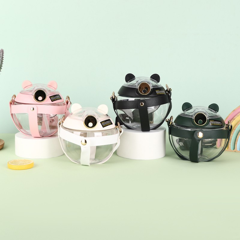Etiquetas: botella de agua, botella transparente, botella panda, botella con diseño animal, botella con correa, botella para niños, botella reutilizable, botella linda, botella de plástico, botella portátil
