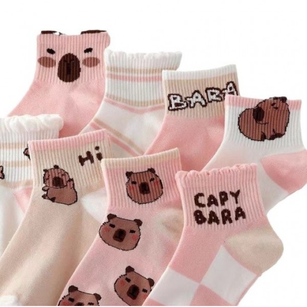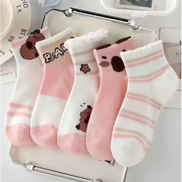 Calcetines kawaii de capibara para mujer – Medias rosas con diseño tierno y suave estilo coreano- Por Mayoreo 883768