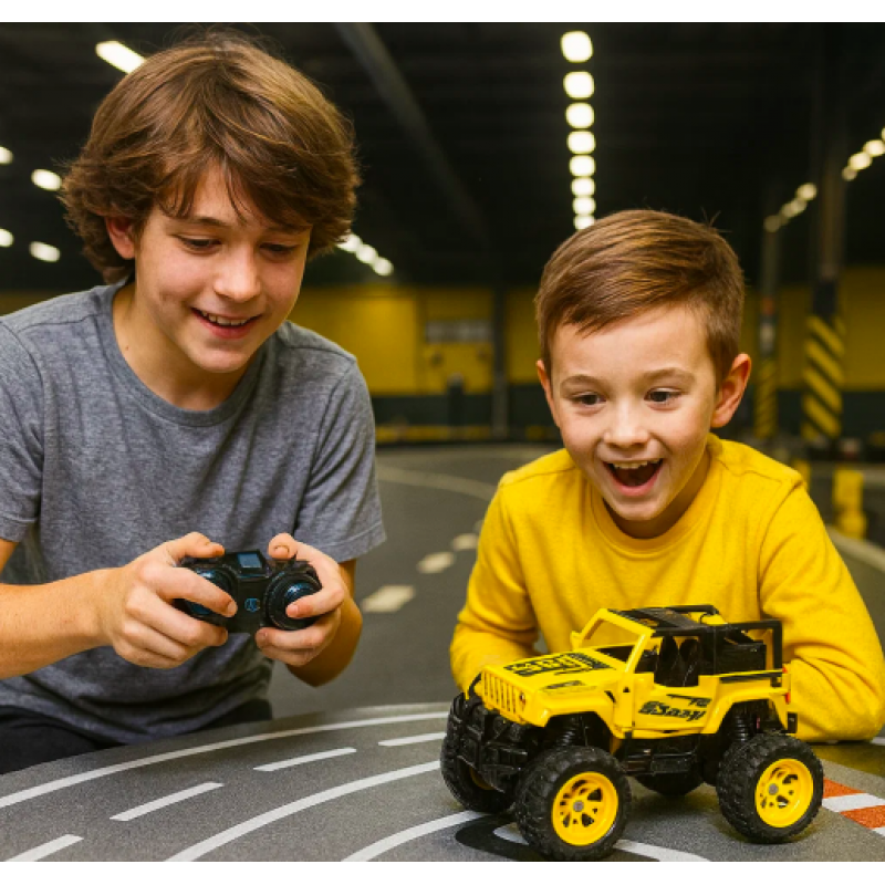 Etiquetas: Camión tipo Jeep todoterreno a control remoto con batería recargable, llantas grandes y gran tracción. Ideal para juego al aire libre, carreras y regalo para niños.