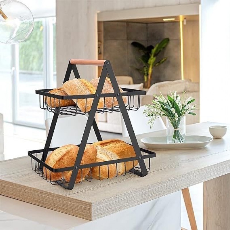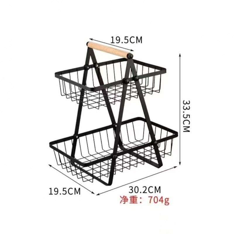 Canasta metálica de 2 niveles con diseño moderno y resistente, ideal para organizar frutas, verduras, pan o artículos de cocina venta al por mayor 34122-34