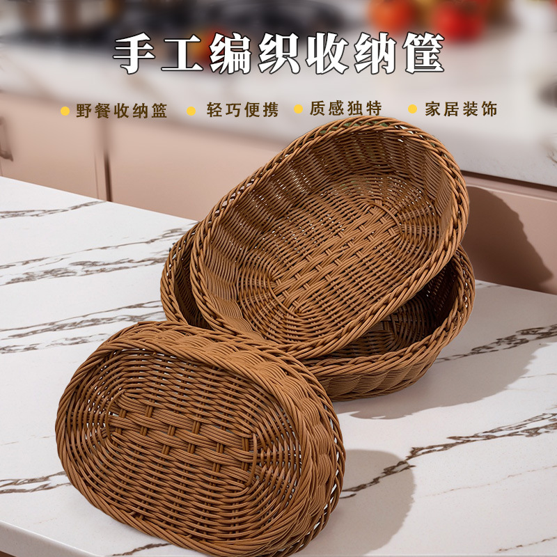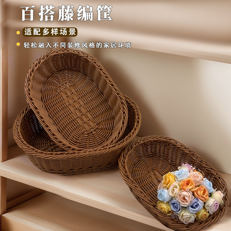 Etiquetas: canasta de plástico, canasta tipo mimbre, canasta ovalada, canasta para pan, canasta decorativa, canastilla de frutas, GG01-2