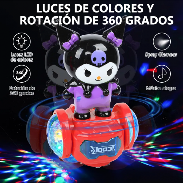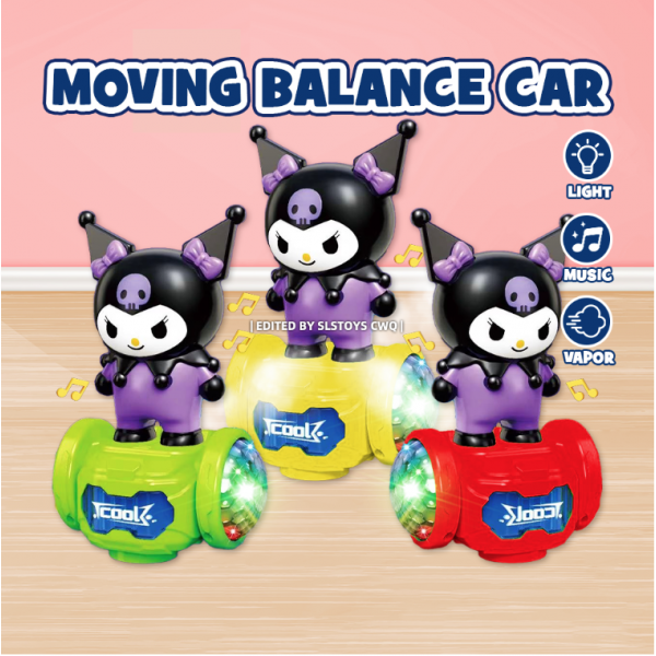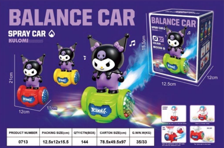 Carrito balance con diseño Kuromi que se desplaza manteniendo el equilibrio, con efectos de luz, música y spray tipo vapor. Juguete interactivo y llamativo, regalo para niños. Venta al por mayor