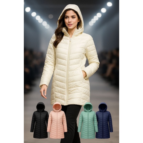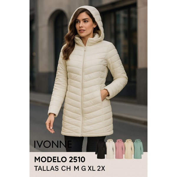 Etiquetas: Chamarra larga acolchada para dama Ivonne 2510 con gorro | Térmica, ligera y elegante | Tallas CH a 2X | Varias combinaciones de color