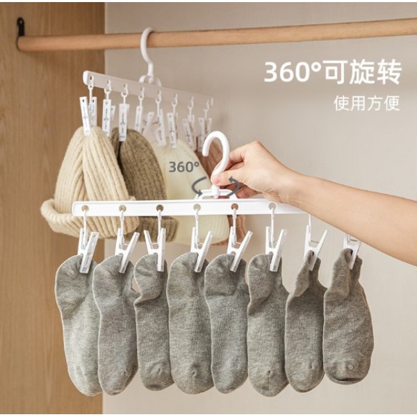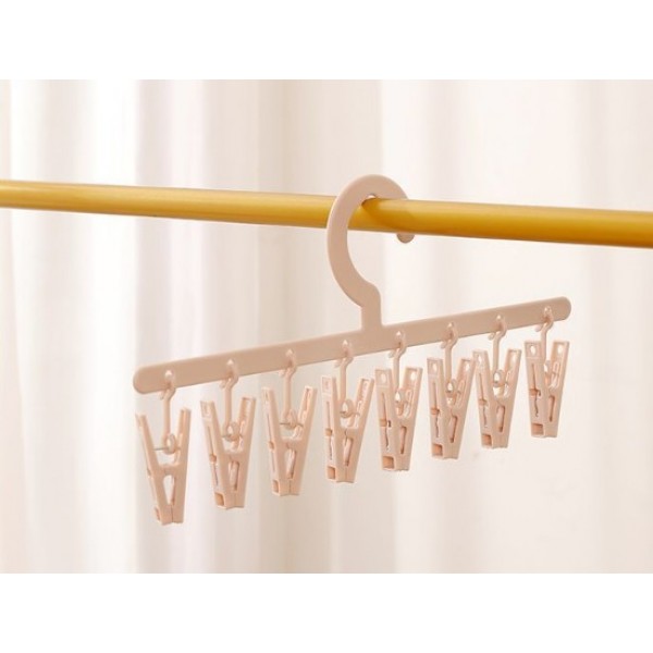 Colgador portátil con 8 pinzas para ropa interior, calcetas y prendas pequeñas, diseño compacto y resistente. Gancho superior y pinzas antideslizantes Por Mayoreo YD145