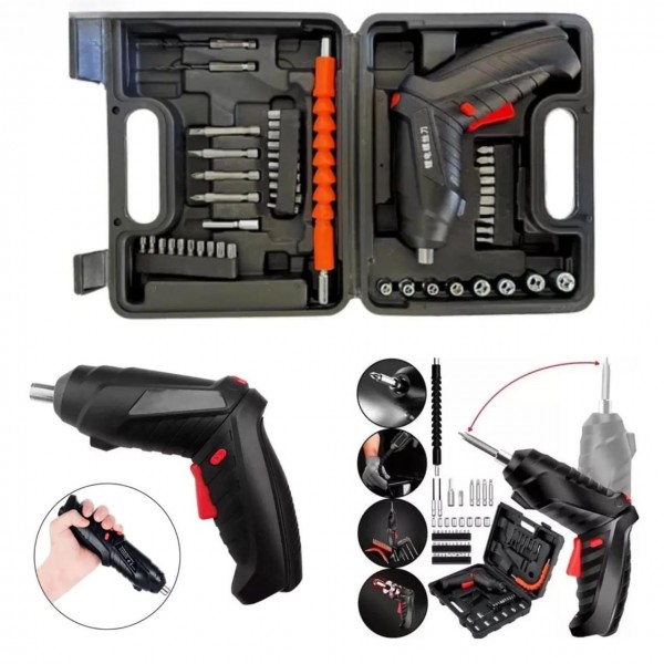 Destornillador eléctrico inalámbrico con diseño ergonómico y kit completo de puntas y accesorios para trabajos de armado y reparación. Ideal para hogar, oficina y bricolaje. Venta por mayoreo. Modelo RSD-181.