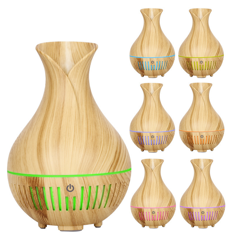 Difusor de aroma ultrasónico tipo florero – LED multicolor – Imitación madera – Mayoreo