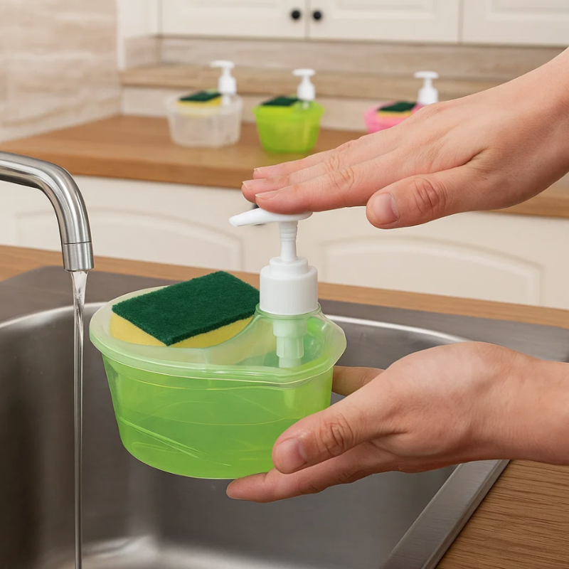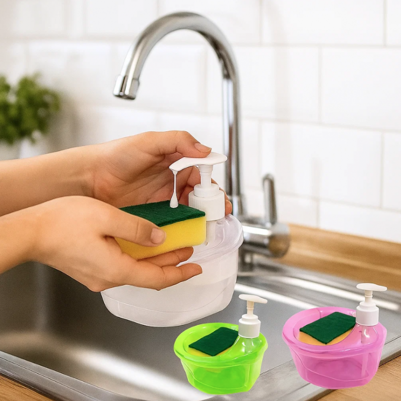 Etiquetas: dispensador de jabón, dispensador cocina, jabón líquido, esponja, organizador cocina, dispensador 2 en 1, modelo 3772