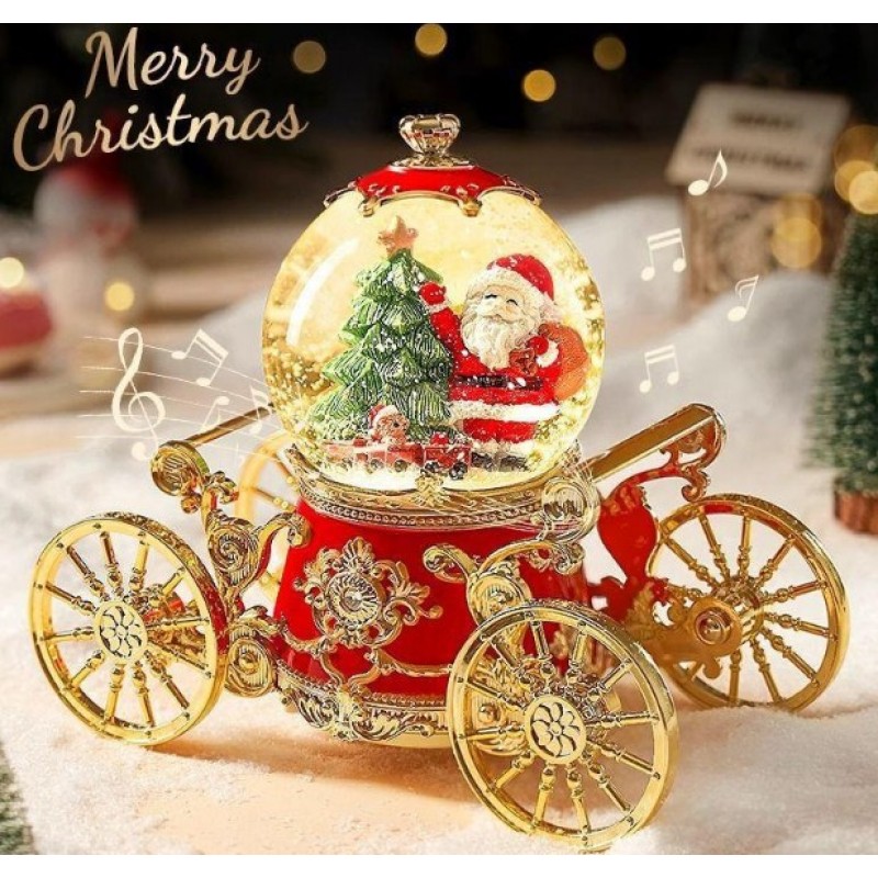 Esfera musical navideña con Santa Claus – efecto nieve – carroza decorativa, adornos navideños Por Mayoreo D-21655
