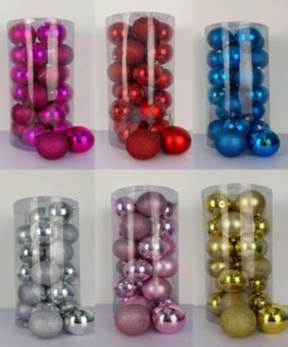 Juego de 24 esferas navideñas para decorar de 4cm (varios colores) Por Mayoreo 6111-41