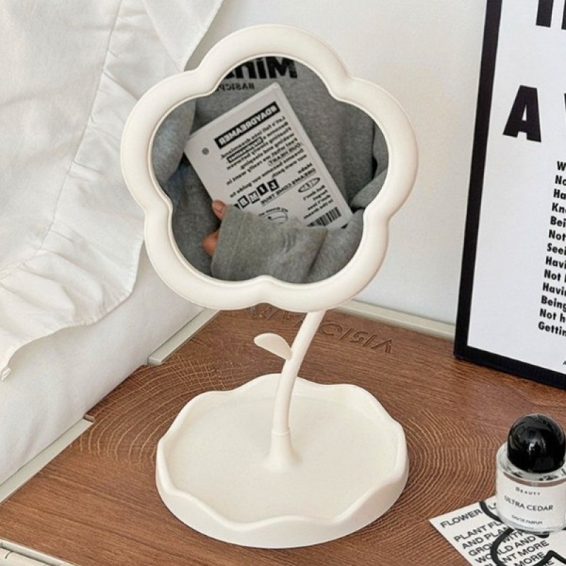 Espejo de maquillaje de mesa con diseño en forma de flor, estructura decorativa con base organizadora, ideal para dormitorio, tocador y rutinas de belleza, Mayoreo HYD-5003