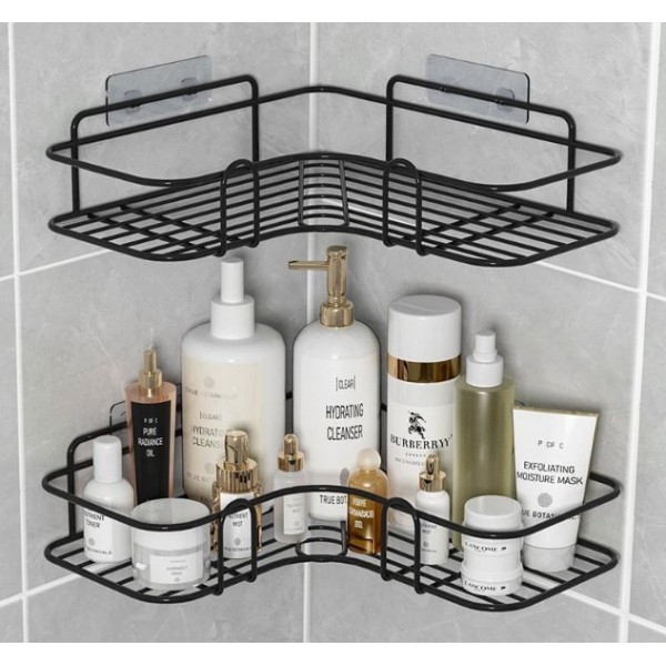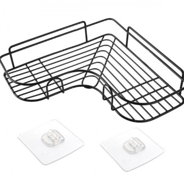 Etiquetas: Estante esquinero metálico con diseño funcional y resistente, ideal para organizar artículos de baño, cocina o lavandería sin necesidad de perforar. por Mayoreo P-11983, estante esquinero, repisa metálica, organizador baño, organizador cocina, estante sin perforar, accesorios de baño, mayoreo hogar