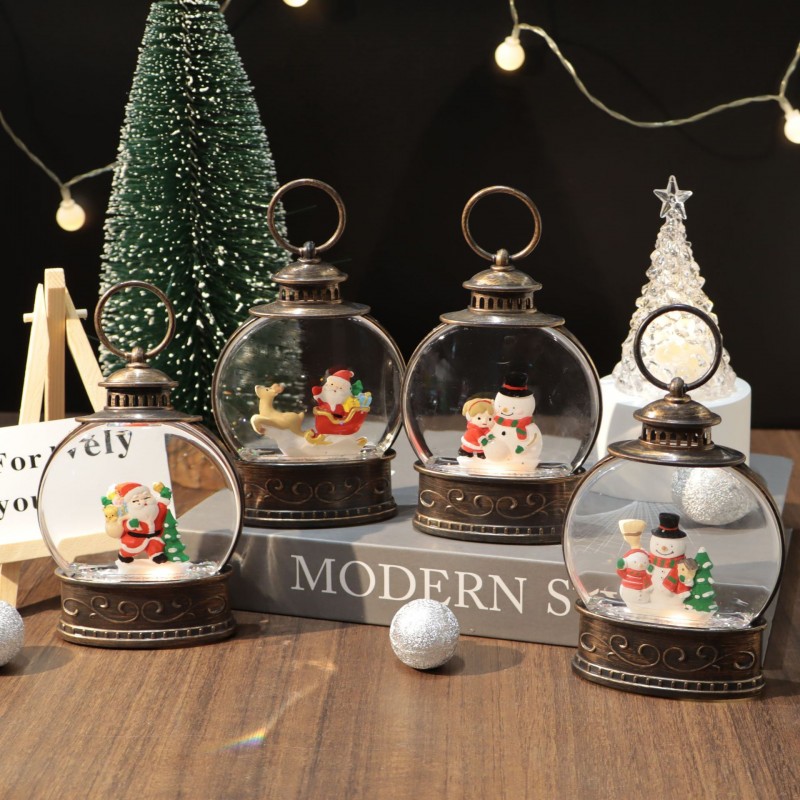Dale un toque mágico a tu hogar con este encantador farol navideño decorativo, que simula una esfera de cristal con muñecos de nieve, árbol de Navidad y efecto de nieve brillante Venta al por mayor SDD1352