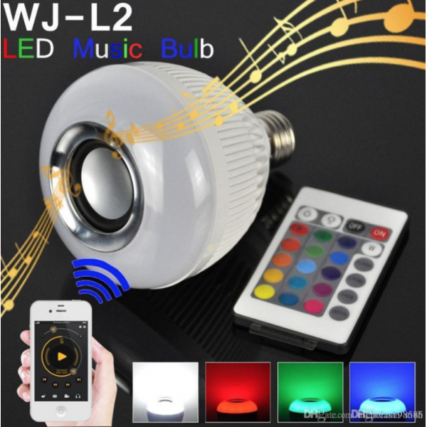 Foco LED con bocina Bluetooth iluminación RGB multicolor y música Incluye control remoto. Ideal para fiestas, recámaras, salas y ambientación decorativa. Venta por mayoreo DP-1004