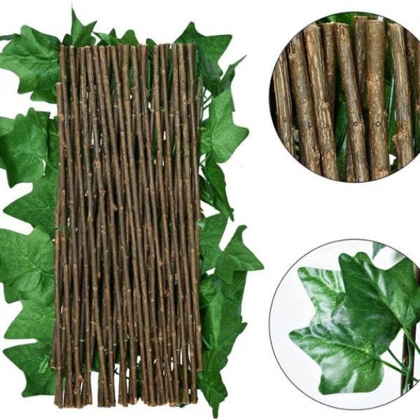 Follaje expandible biombo de hojas artificiales con base de madera 1.2 m – Decoración natural para muros y jardines- Por Mayoreo 0450-10