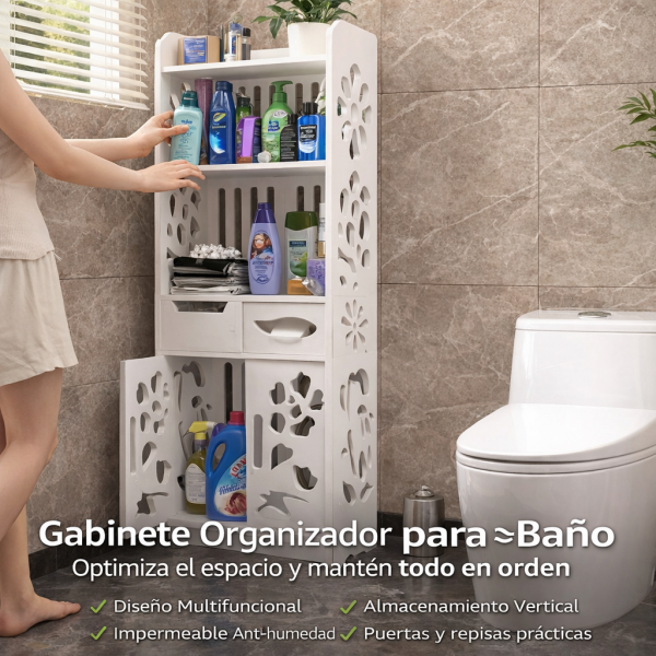 Gabinete Organizador para Baño Multifuncional con Puertas y Repisas – Almacenamiento Vertical- Por Mayoreo M9247-9