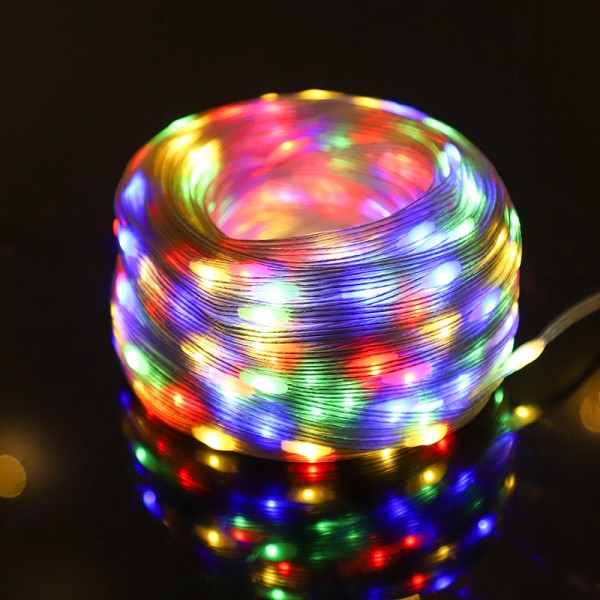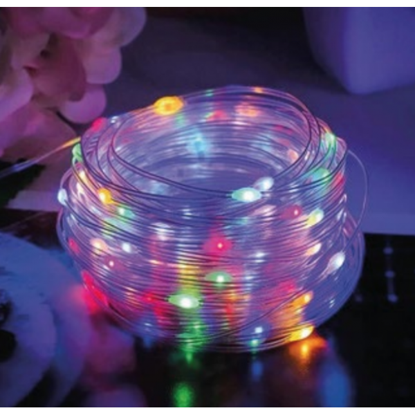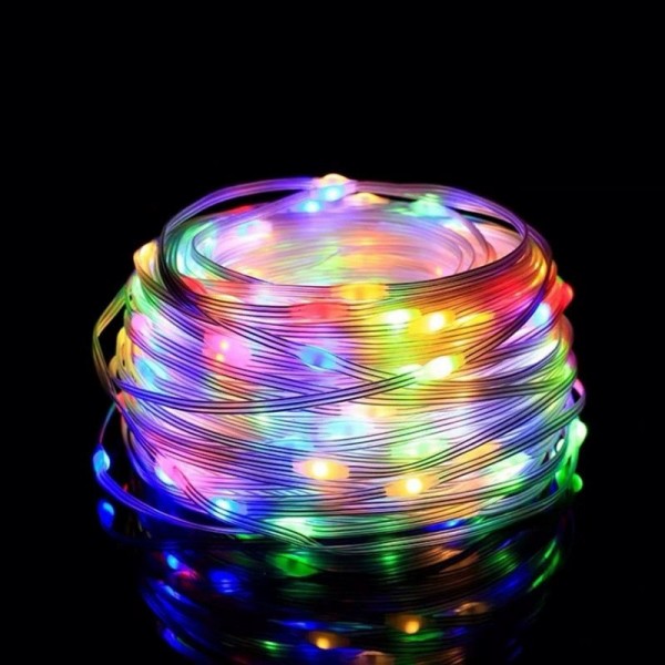 Guirnalda LED de 30 metros con 300 luces multicolor y 8 funciones de iluminación. Ideal para decoración navideña, fiestas y exteriores. Venta al por mayor