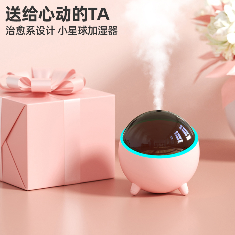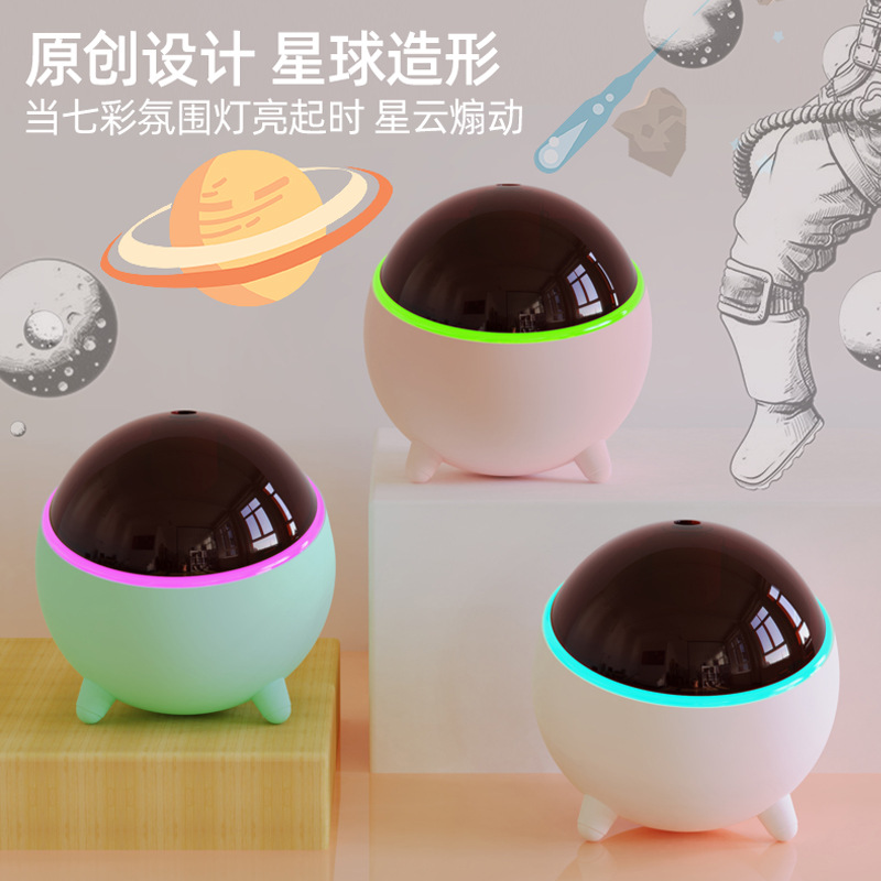 Humidificador con diseño de esfera planetaria y luz LED multicolor, ideal para aromaterapia, ambientar espacios y crear un entorno relajante. Funciona como difusor de esencias con tecnología ultrasónica para emitir vapor frío. Disponible en varios colores pastel. Perfecto para el hogar, oficina o regalo. Ideal para venta por mayoreo.