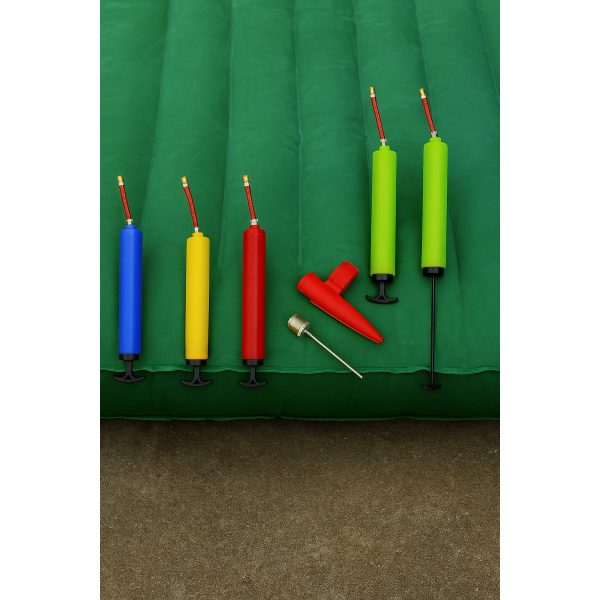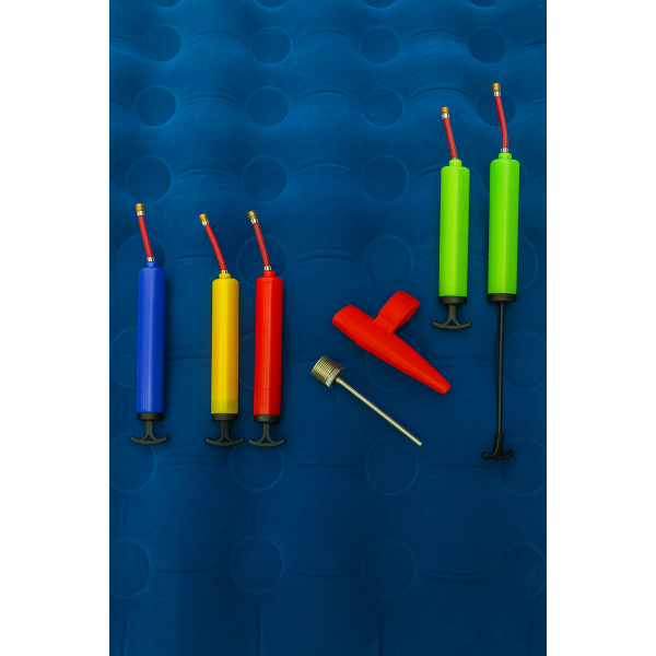 Bomba de aire manual portátil multicolor con boquillas intercambiables, Inflador ligero para globos, pelotas, juguetes inflables y accesorios de fiesta, mayoreo JJYP561