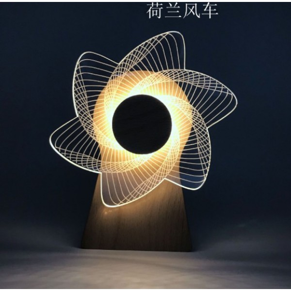 Lámpara Caja de Música de Madera con Molino de Viento Giratorio y Luz Nocturna – Noria Decorativa – Regalo Creativo, Por Mayoreo HC0771