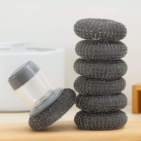 Etiquetas: cepillo dispensador de jabón con esponja metálica, recargable, esponja de acero inoxidable para cocina, limpieza de ollas y sartenes, repuesto fácil de cambiar, utensilios de cocina duraderos, accesorios de limpieza para hogar, cepillo ergonómico con depósito, herramienta de lavado profesional