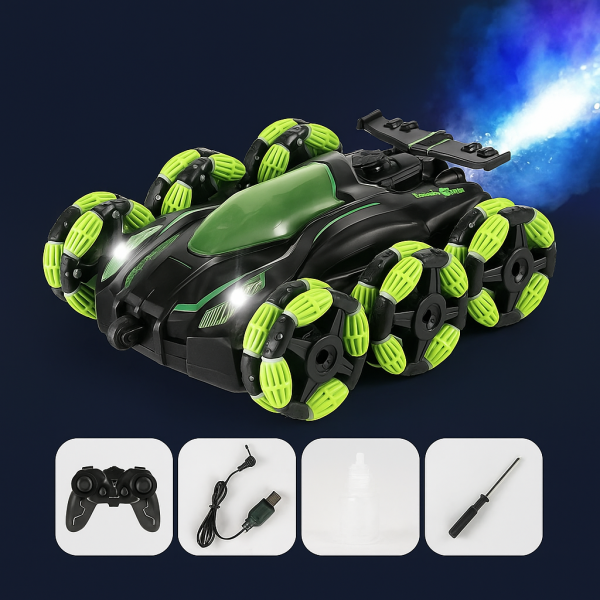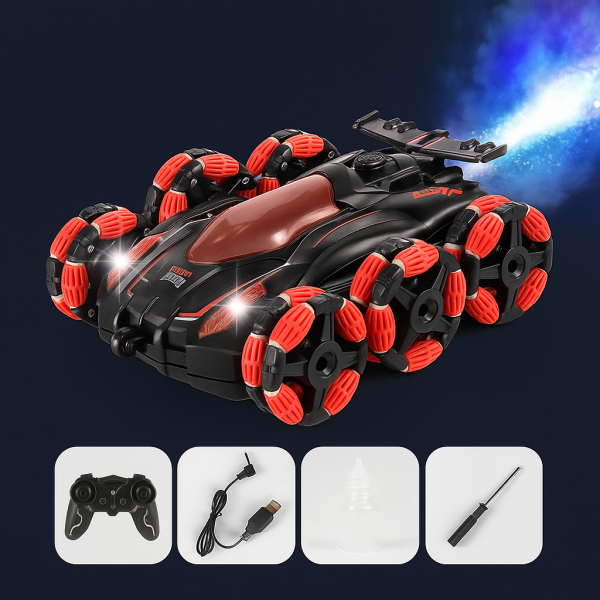 Etiquetas: carro acrobático con efecto de humo, auto RC drift con doble niebla, coche acrobático recargable por USB, vehículo de control remoto 4x4, carro con luces LED y ruedas multidireccionales, coche acrobático de alta velocidad, auto con giros 360 grados, carro eléctrico resistente para niños, juguete interactivo con vapor realista, coche deportivo futurista ideal para regalo y diversión familiar