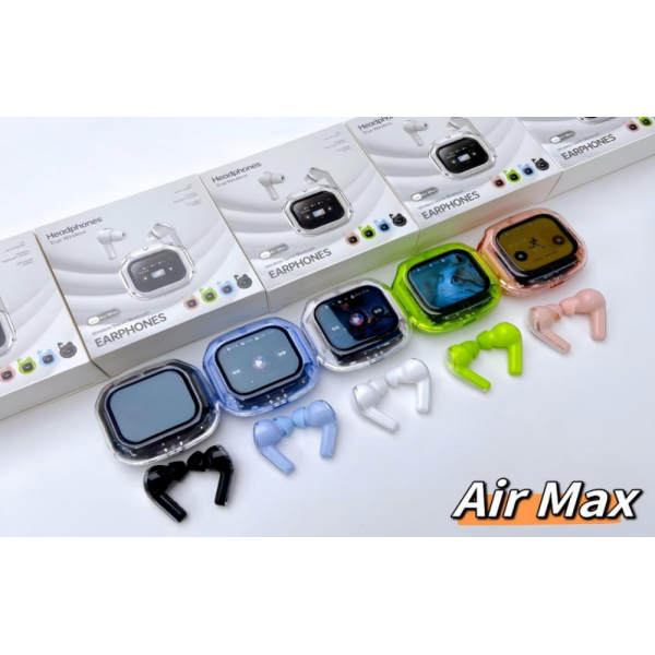 Etiquetas: Audífonos Air Max, audífonos inalámbricos con pantalla digital, estuche transparente, bluetooth 5.3, cancelación de ruido, True Wireless, batería larga duración, control táctil, audífonos ergonómicos, manos libres, audífonos TWS multicolor, audífonos premium Air Max