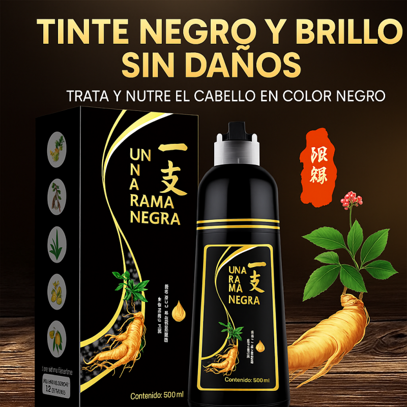 Etiquetas: shampoo tinte negro, shampoo colorante 3 en 1, tinte herbal negro, shampoo para cubrir canas, tinte rápido negro natural, shampoo tinte unisex, shampoo tinte con ginseng