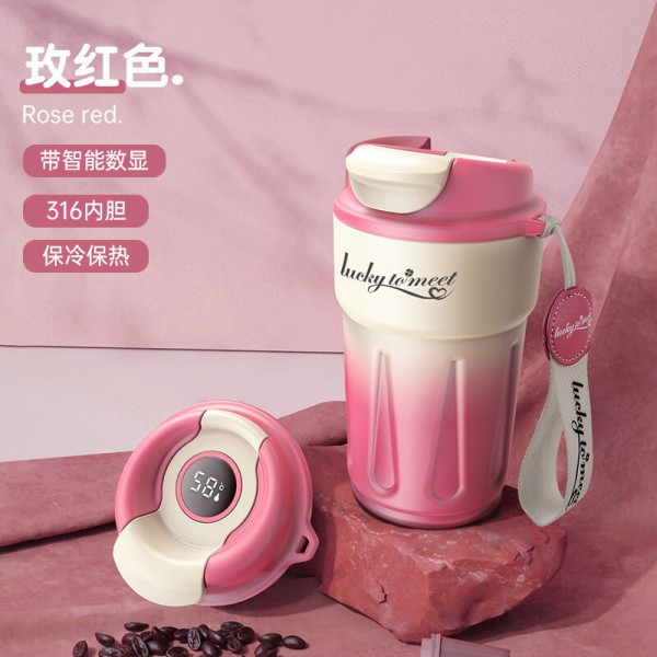 Vaso térmico reutilizable con tapa abatible y lector de temperatura 420ml, vaso portátil que mantiene la temperatura de bebidas, para niños y jóvenes. Venta Por Mayoreo BZ822