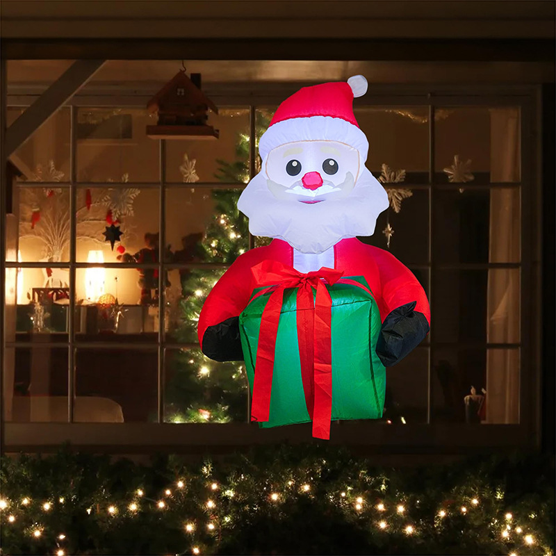 Inflable decorativo de Santa Claus con regalo, ideal para exteriores e interiores. Incluye luz interna que brilla en la noche, ventilador integrado para inflado automático y materiales venta al por mayor W-RSDY5324