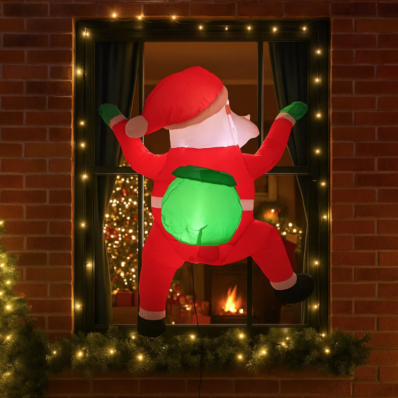 Inflable de Santa Claus de 1.5 m con luz LED. Ideal para decorar fachadas, jardines o interiores. Venta por mayoreo