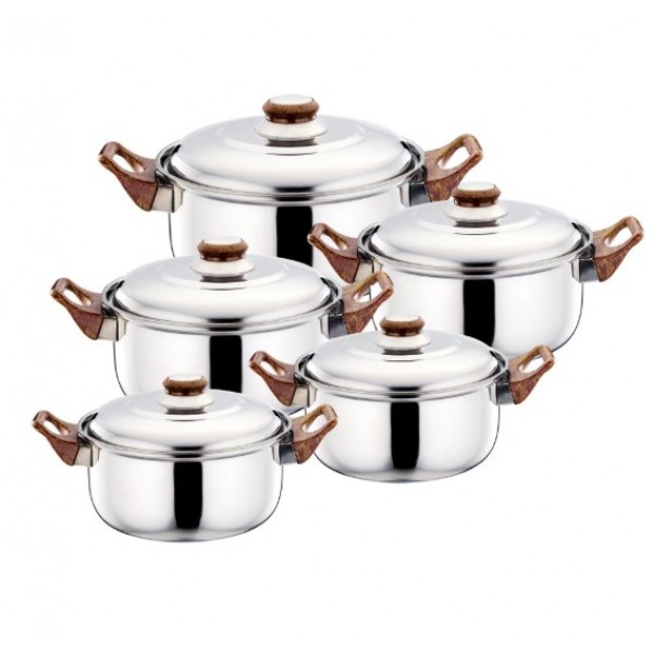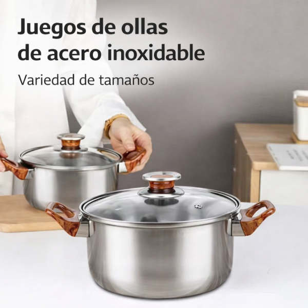 Juego de 5 Ollas de Acero Inoxidable con Tapa y Asas – Set de Ollas de Cocina en Varias Medidas- Por Mayoreo 16215-3
