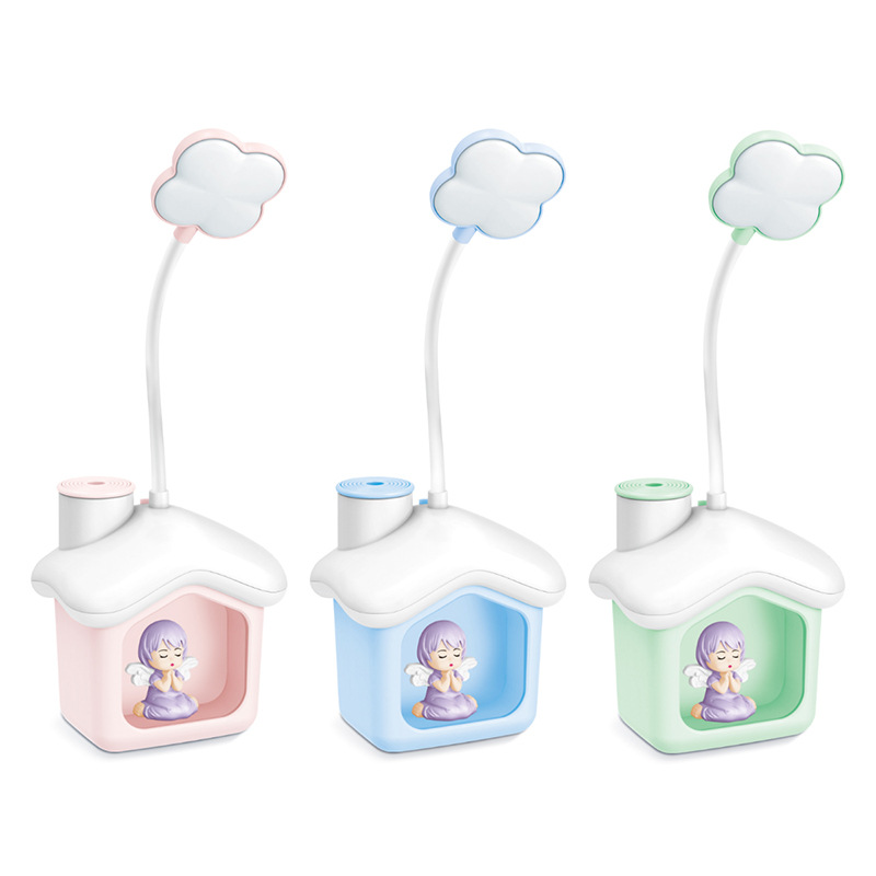 Lámpara de escritorio en forma de casita y sacapuntas, luz led suave, ideal para niños, venta por mayoreo 17273-7