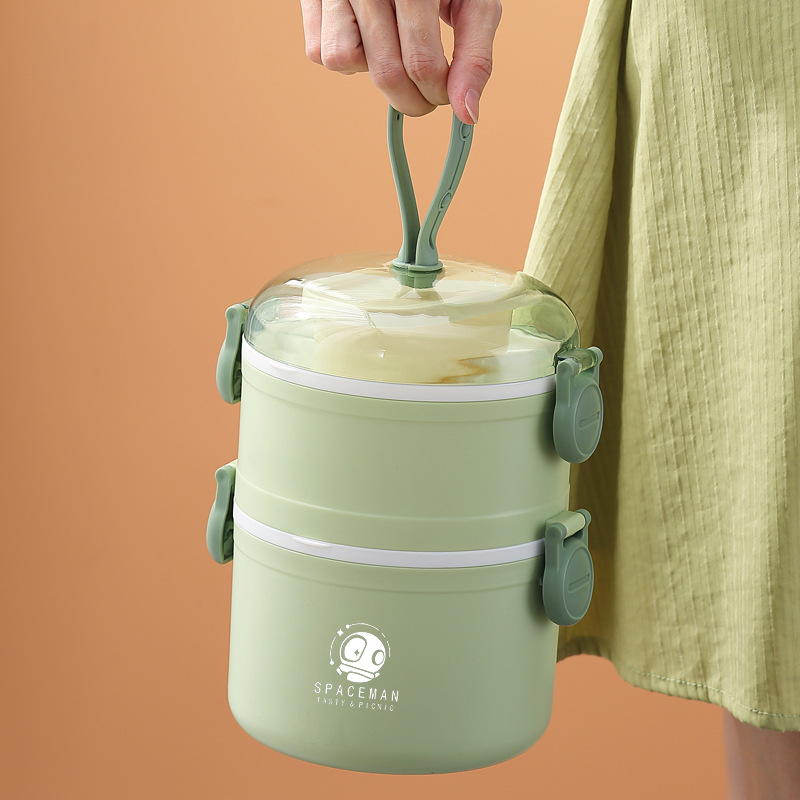 Lonchera apilable de 2 y 3 niveles con tapa hermética y agarradera portátil. Ideal para transportar comida caliente o fría, perfecta para oficina, escuela o picnic venta al por mayor 582