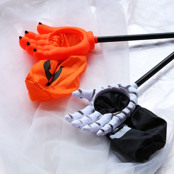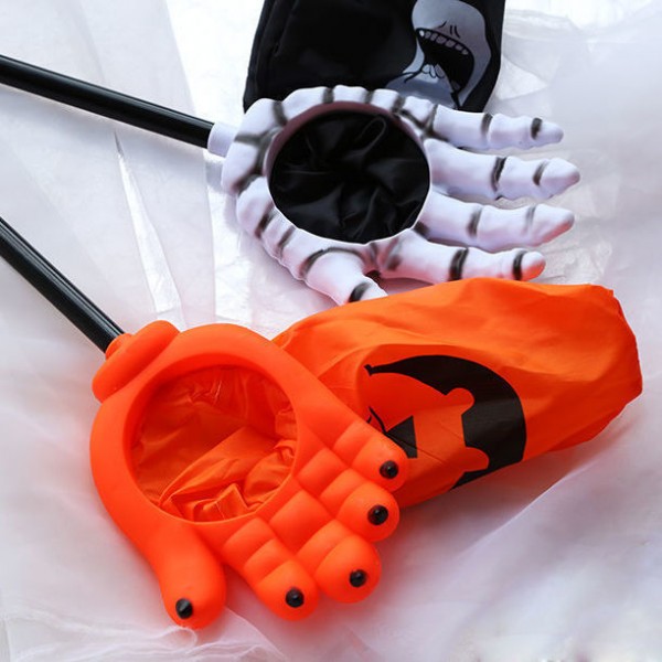 Divertida mano atrapa dulces con red extensible, perfecta para Halloween. Disponible en diseño de mano esquelética o mano naranja con uñas negras Venta al por mayor M1985-16