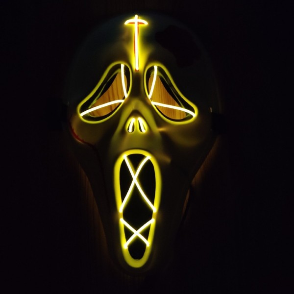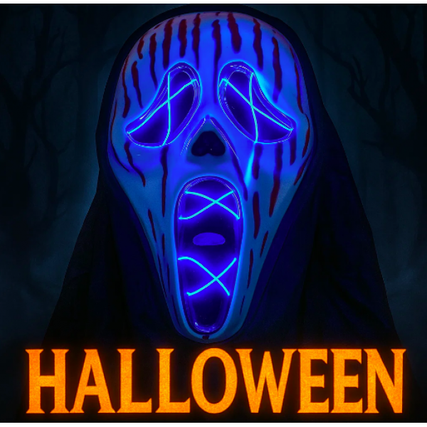 Etiquetas: máscara Halloween, máscara LED, máscara neón, disfraz terror, máscara luminosa, máscara sangrienta, luces LED Halloween, máscara de miedo