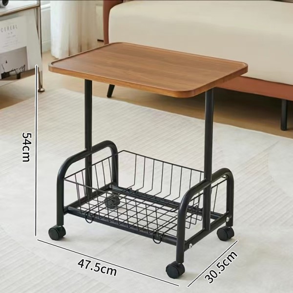 Mesa auxiliar práctica y funcional, ideal para sala, recámara u oficina en casa. Cuenta con superficie superior resistente para laptop, libros o bebidas, además de una canastilla inferior para almacenar snacks, frutas u objetos personales. Su diseño con ruedas permite moverla fácilmente y adaptarla a distintos espacios, ofreciendo comodidad, orden y versatilidad en el día a día. Ideal para uso doméstico y comercial. *VIDEO ILUSTRATIVO*